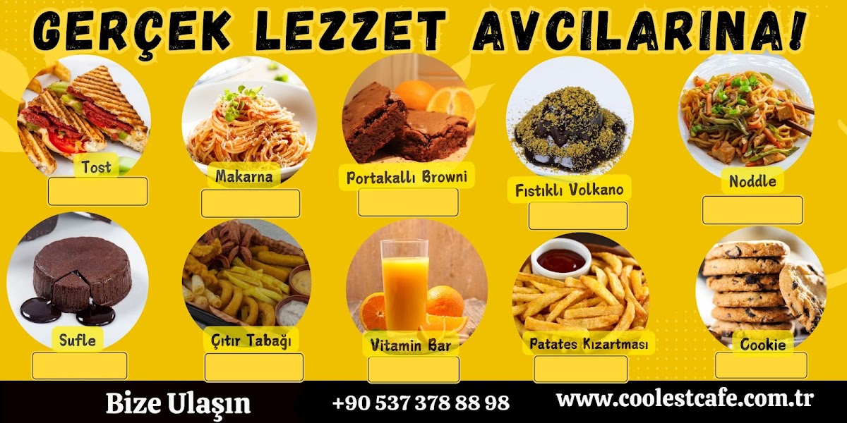 Welcome to Coolest Cafe, your go-to destination in the heart of Gaziemir, İzmir. Located at Değişkent Sitesi, this charming cafe offers a menu that delights the senses and embraces the warmth of an inviting atmosphere. From their delicious Kaşarlı Tost to the savory Ayvalık Tostu, every bite is a taste of comfort.